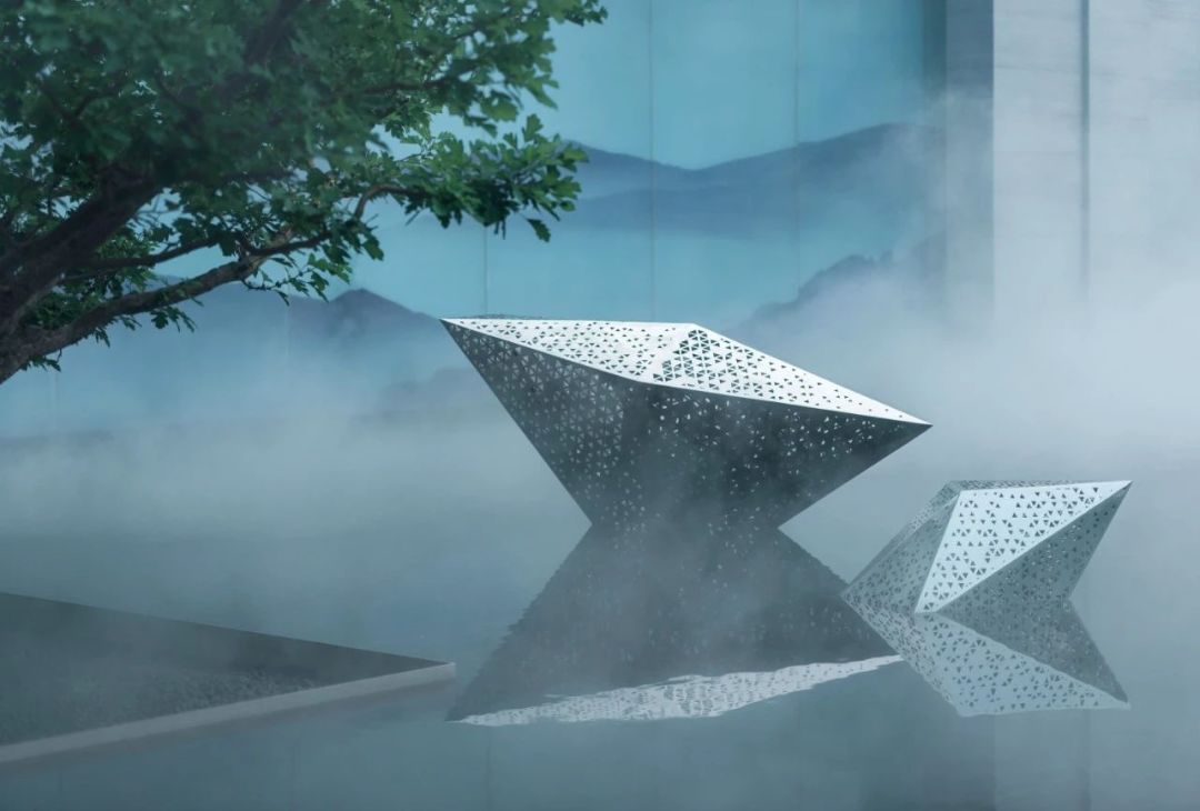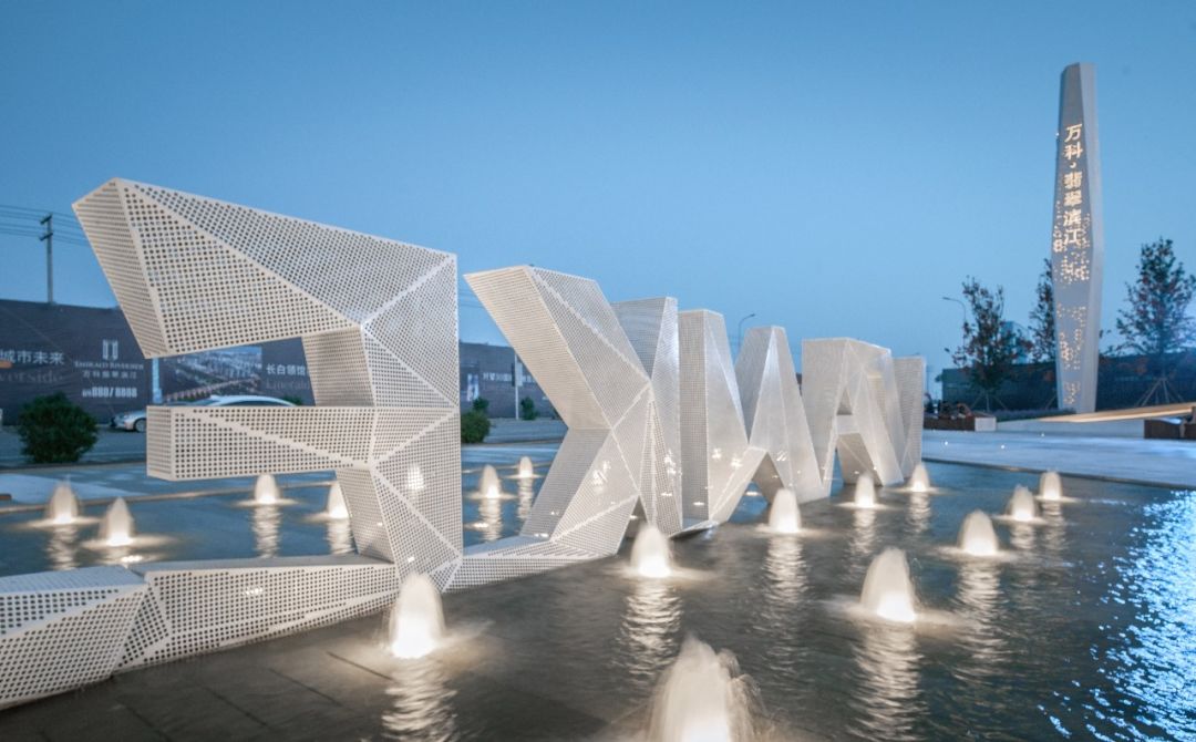 顯得清透又澄澈。水景雕塑,形態(tài)各異的錯落,極富藝術(shù)質(zhì)感