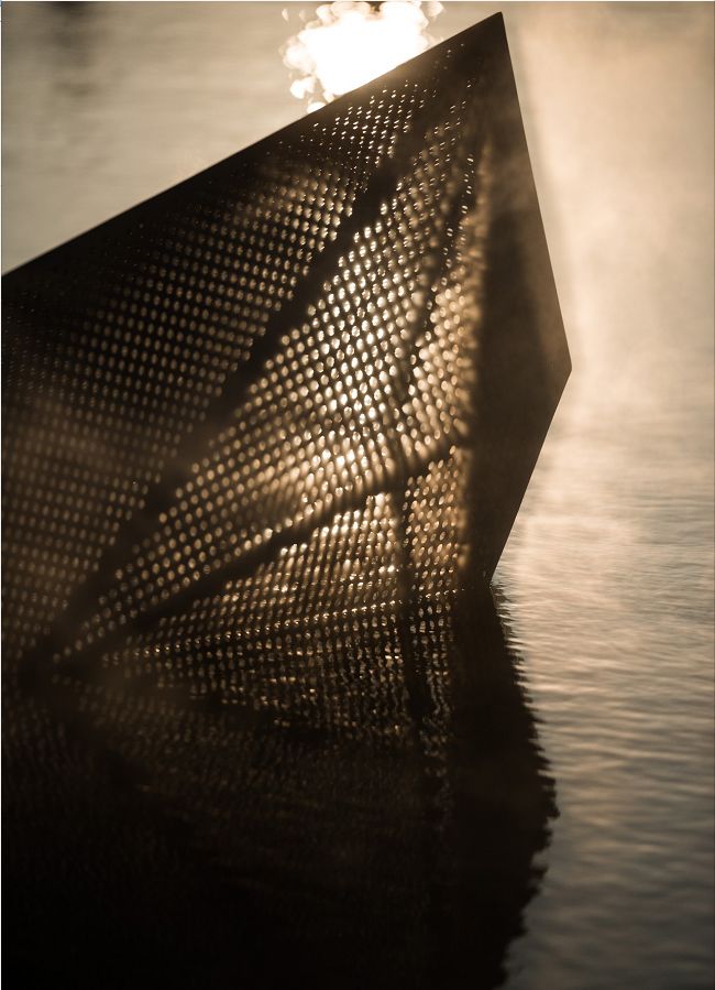 為了讓山形在光照下更加立體,SWA集團(tuán)在舊金山辦公室采用參數(shù)化技術(shù)模擬山形紋理,通過激光切割成孔的創(chuàng)新“沖孔板”工藝打造54739個(gè)沖孔,香港置地景觀部邀請雕塑公司進(jìn)行現(xiàn)場實(shí)驗(yàn),歷經(jīng)8次板材厚度測試,終于完美兼顧“孔型穩(wěn)定”與“山形還原”。