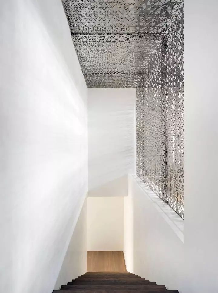 透光板的設(shè)計(jì)與應(yīng)用,無處不在樓梯處的透光板,若隱若現(xiàn)之間增加了空間的通透性用沖孔金屬網(wǎng)來控制隱私考慮到自然光照條件金屬網(wǎng)沖孔板屏幕將光線引入空間的同時(shí)還要為多個(gè)公共生活空間提供隱私