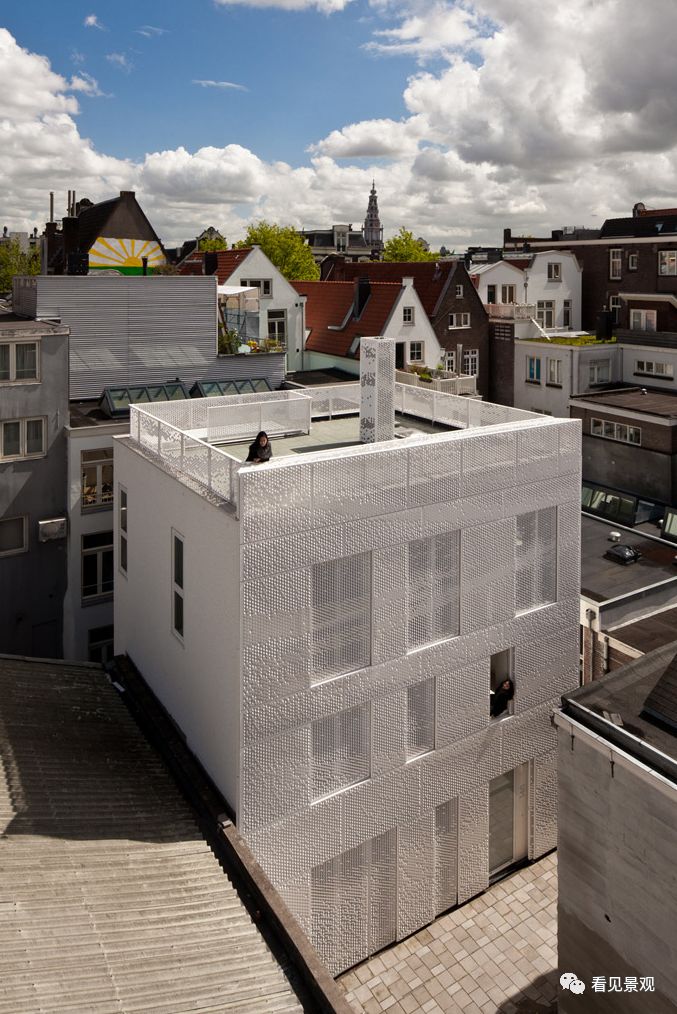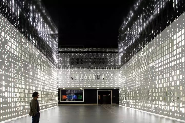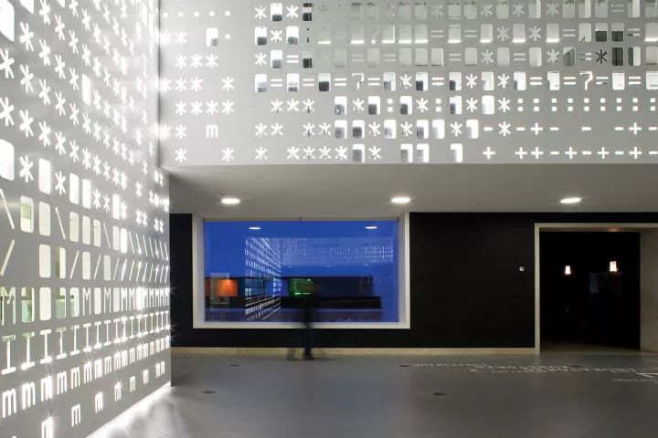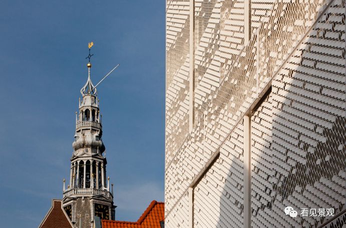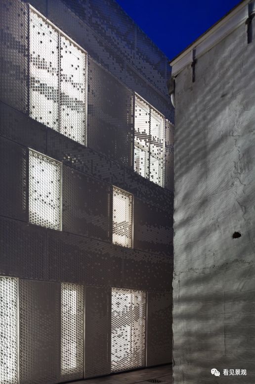 為建筑披上一身純潔無暇白色表皮其白色表皮是激光切割的六邊形網(wǎng)格鋁合金穿孔板如同錦緞一般覆蓋了建筑,又揭示了歷史▼