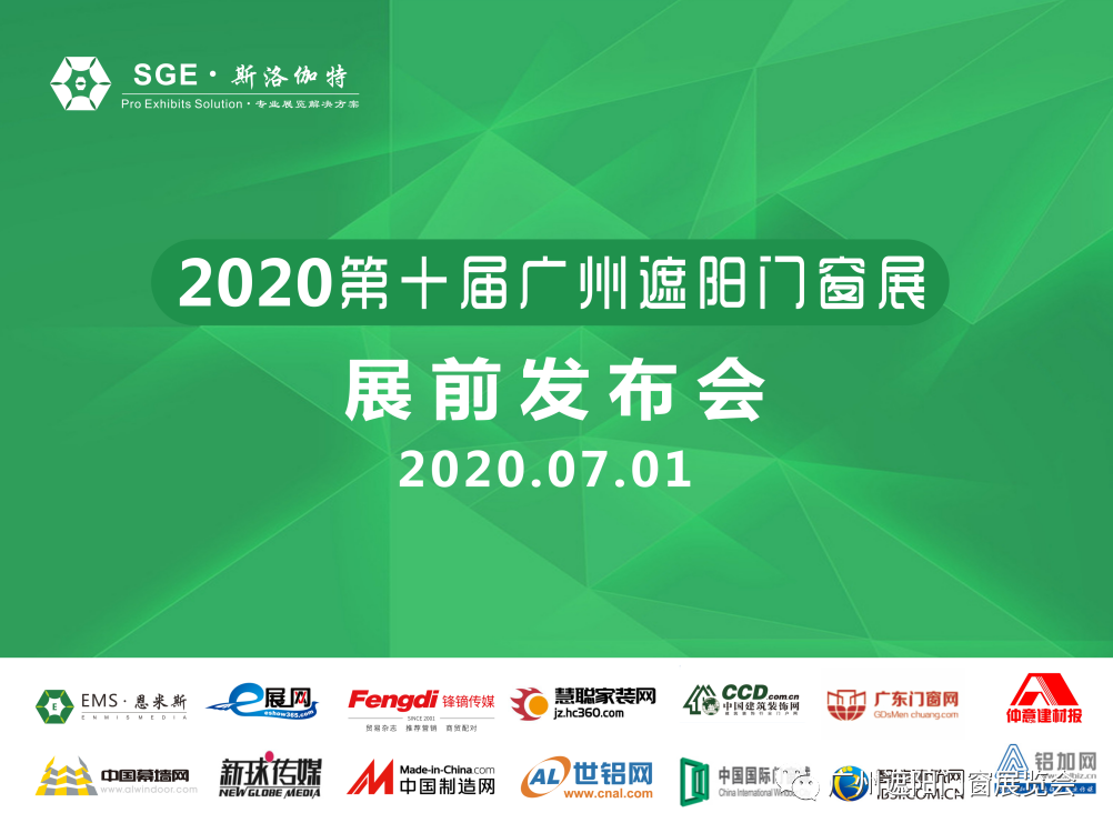 由廣州斯洛伽特展覽策劃有限公司、義烏米恩斯展覽服務(wù)有限公司主辦的第十屆廣州遮陽(yáng)門(mén)窗展覽會(huì)將于7月8-10日在廣州國(guó)際采購(gòu)中心隆重舉辦。在本屆展會(huì)開(kāi)展前,為讓廣大觀(guān)眾、媒體記者與業(yè)界人士在第一時(shí)間了解到本屆展會(huì)更多的籌備情況及各項(xiàng)精彩亮點(diǎn),2020年第十屆廣州遮陽(yáng)門(mén)窗展·展前發(fā)布會(huì)于7月2日下午在廣州召開(kāi)。
