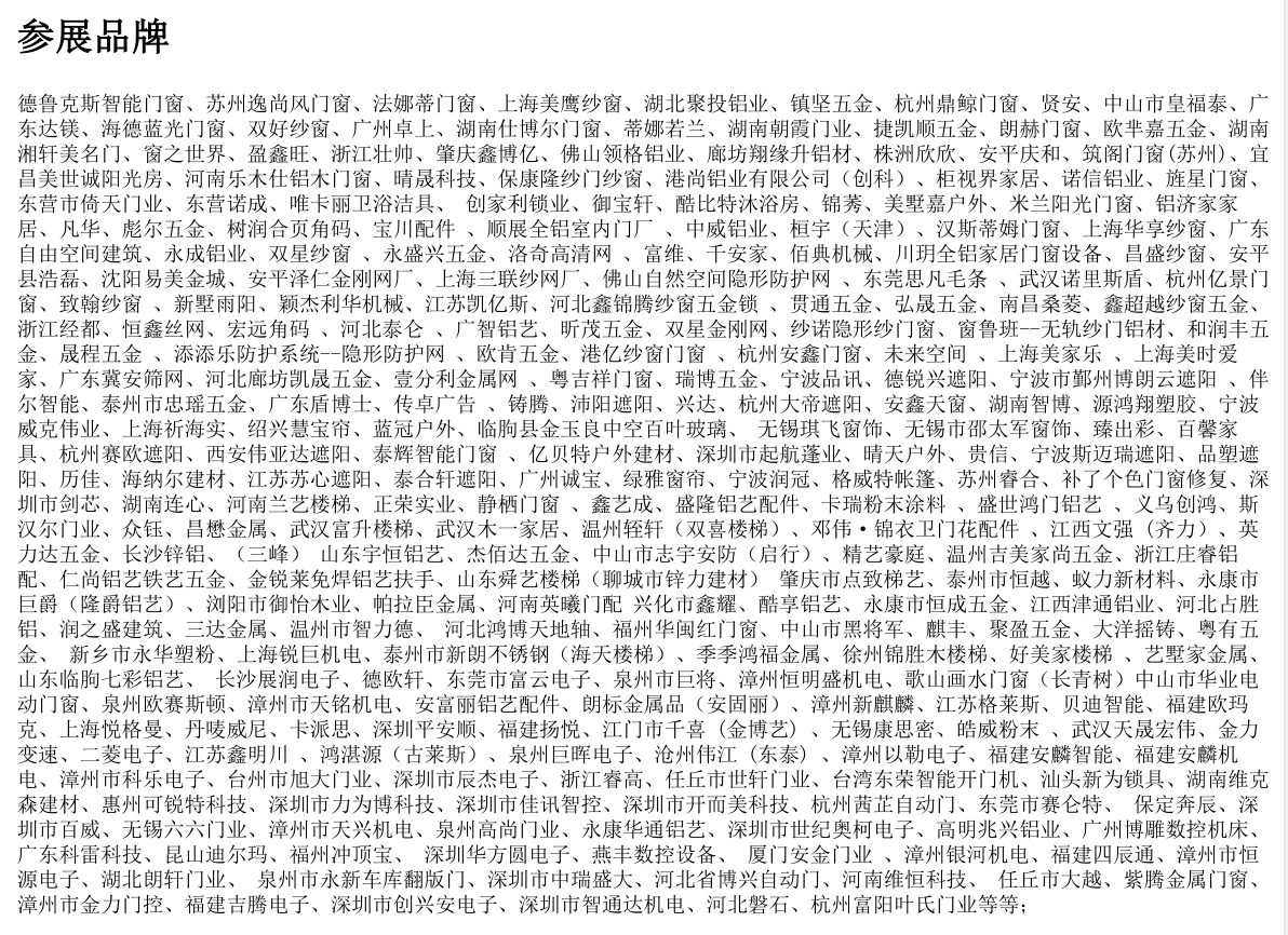 匯聚遮陽(yáng)門窗、電動(dòng)門窗、全鋁家居、戶外家具、五金鎖具、護(hù)欄樓梯、銅鋁雕刻等專業(yè)盛會(huì),專業(yè)打造貿(mào)易交流平臺(tái),請(qǐng)認(rèn)準(zhǔn)我們這個(gè)團(tuán)隊(duì)!我們準(zhǔn)備好了,招展正式開(kāi)始,等您來(lái)!